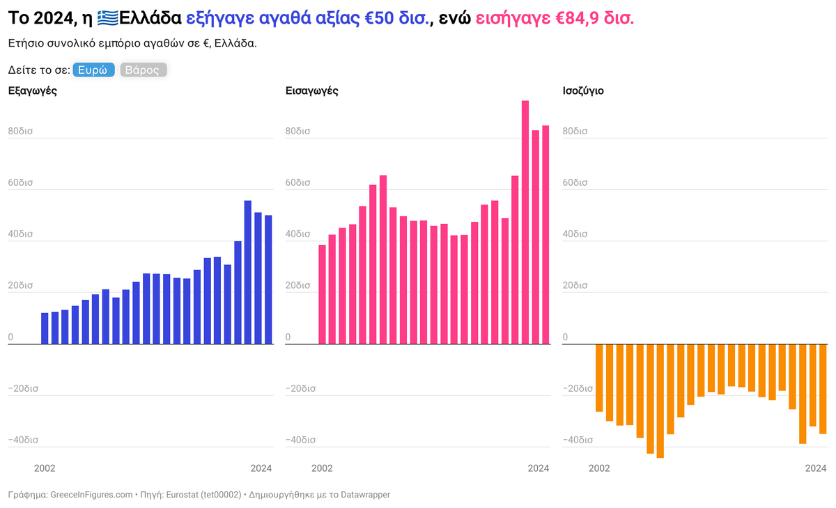 - Ηλεκτρικά μηχανήματα/συσκευές: €1,49 δισ. (εισαγωγές)