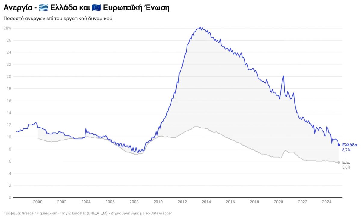 Το 2025, η ανεργία στα νησιά του Αιγαίου και την Κρήτη διαμορφώθηκε στο 5,9% – το χαμηλότερο ποσοστό τουλάχιστον από το 1998